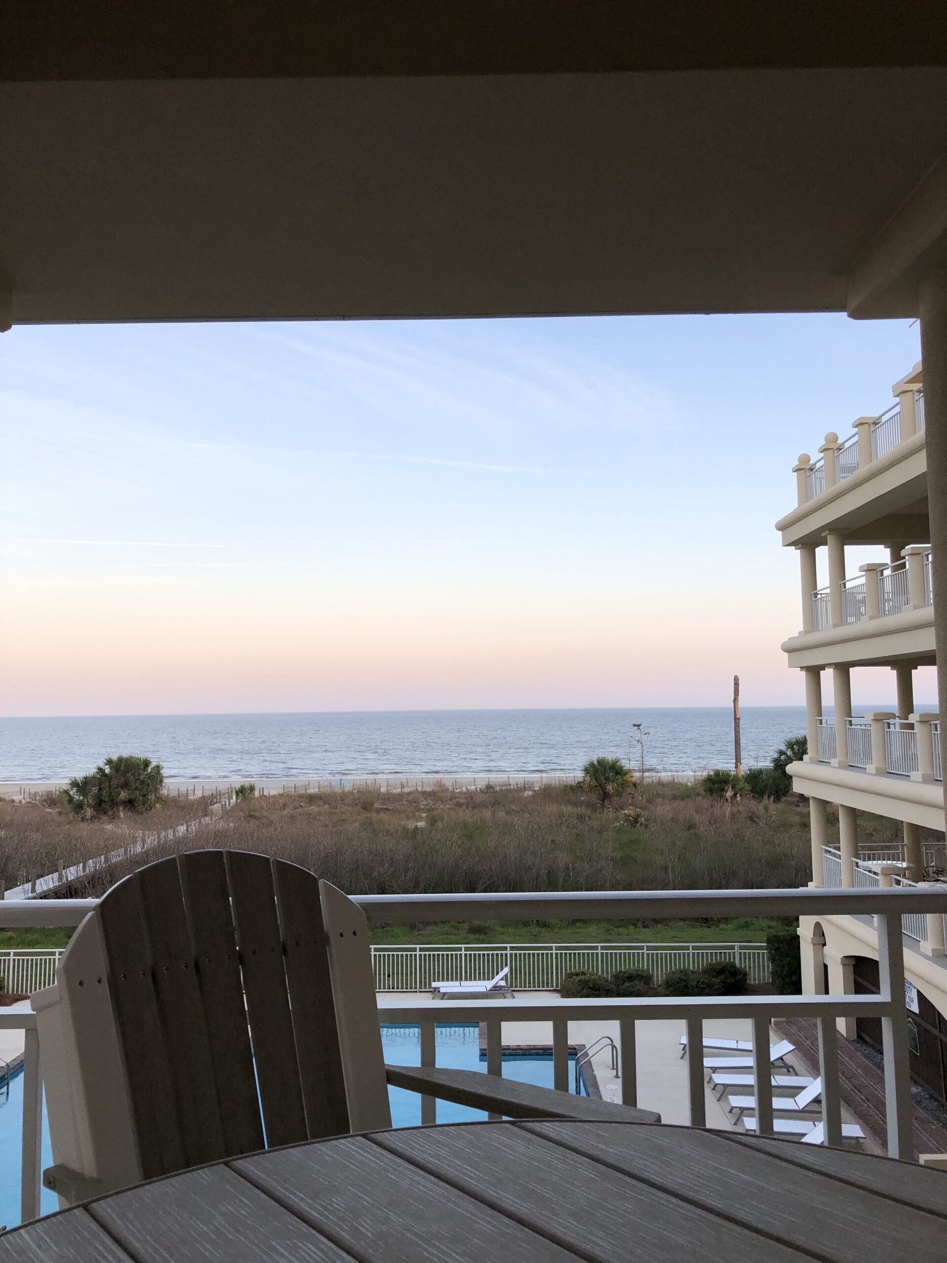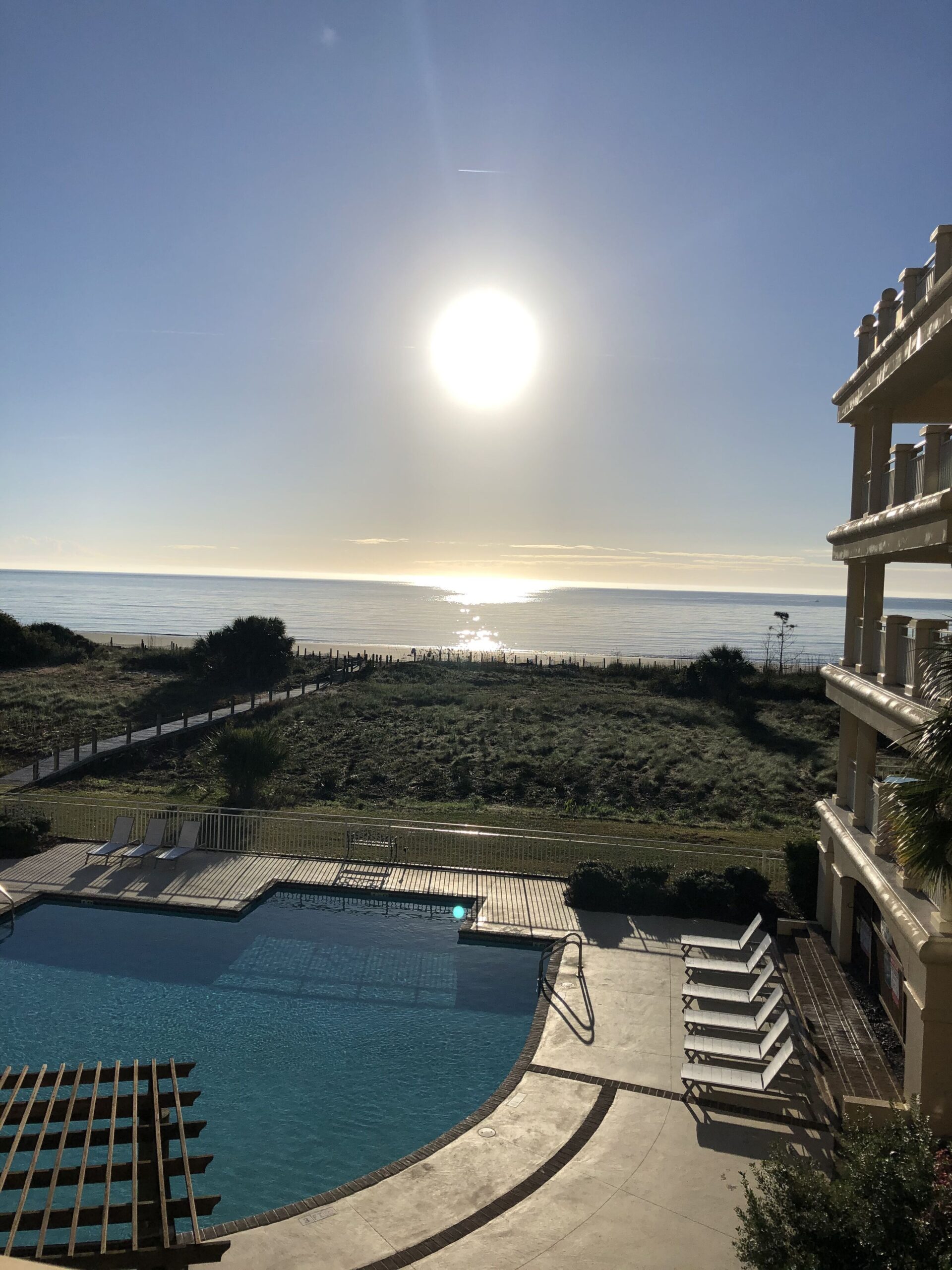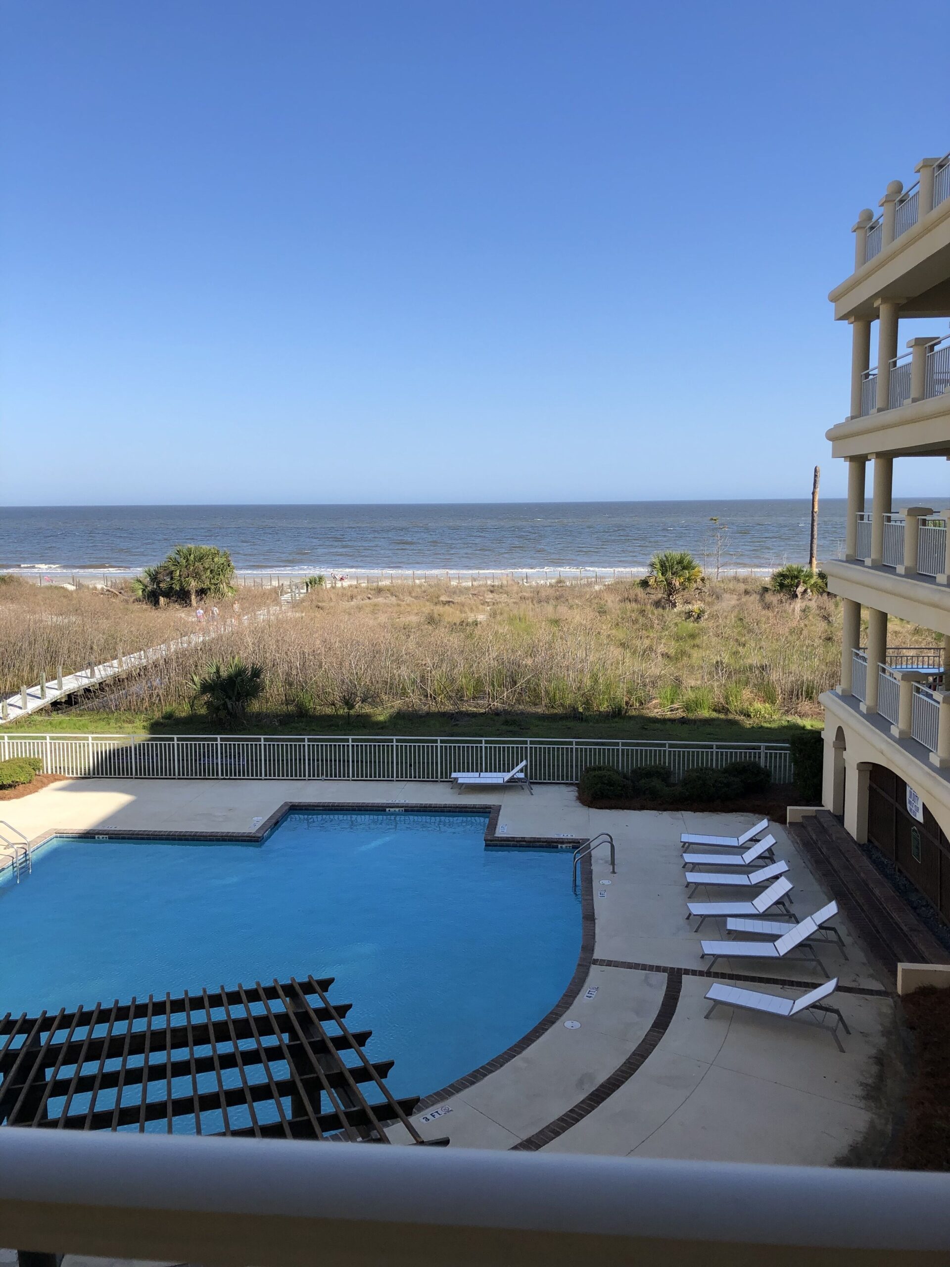 The beautiful Lil’ Slice of Heaven rental is only accessible by ferry or private boat. This stunning condo overlooks 3 miles of pristine, quiet beaches where all you can hear are the sounds of gentle ocean waves & beautiful shore birds chirping. This spacious 1890 sq ft condo is one level and located on the 2nd floor with an outside wrap-around balcony overlooking the pool and ocean.